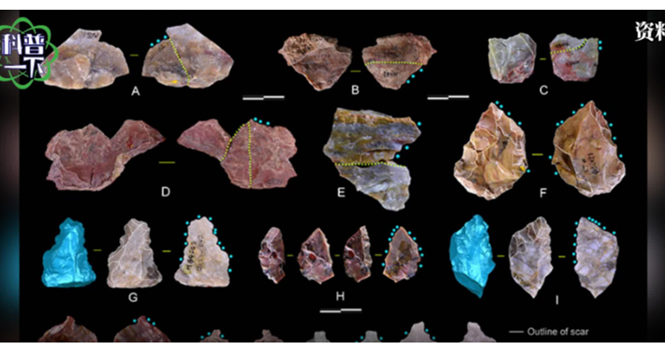 在论文中,中国科学院广州地球化学研究所研究员朱照宇等人详细描述了黄土高原新的上陈遗址的黄土-古土壤地层序列S15至L28层段中发现的早更新世石块,其中82个被打击过,14个未经打击。被打击过的石块包括石核、石片、刮削器、尖状器、钻孔器和手镐——这些都是古人类早期使用工具的证据。作者还在文中介绍了两枚有打击痕迹的石锤。此外,科学家在该区域的地质挖掘探槽中还发现了鹿的下颌骨断块、牛科动物和其他动物的骨骼化石碎片。