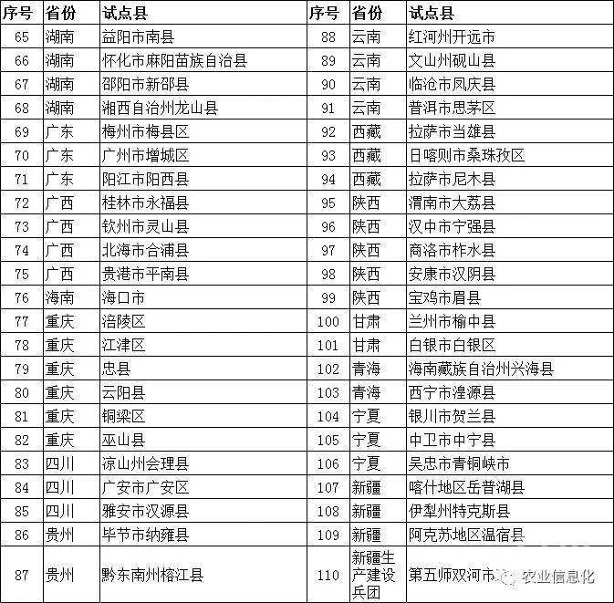 根据《关于实施“互联网+”农产品出村进城工程的指导意见》(以下简称《指导意见》)、《“互联网+”农产品出村进城工程试点工作方案》(以下简称《试点方案》),在自主申报、省级推荐、专家评审的基础上,我部推选了110个县(市、区)作为“互联网+”农产品出村进城工程试点县,现印发你们,请尽快组织开展试点工作。
