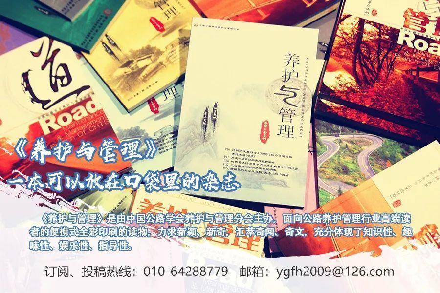 声明:《养护与管理》所推送的文章除无法确认外,都会注明作者和来源。感谢原创作者的辛苦创作与智慧奉献。部分文章资讯来源于网络,所以推送时未能与原作者取得联系,如涉及版权问题,请作者直接与中国公路学会养护与管理分会秘书处联系,我们会在48小时内予以处理。