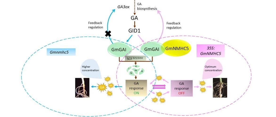 温度是调节植物生长发育的重要环境因素之一。温度升高可以导致植物多种形态变化,如根及下胚轴伸长,早花表型等。研究表明,植物激素GA、BR及光信号途径重要转录因子PIF等在温度调控植物生长中起重要作用【1-3】。GA合成和/或分布的变化对植物生长适应环境温度波动有重要作用。温度升高可促进GA合成基因的表达, GA信号途径的负调控因子DELLA蛋白活性受抑制可促进植物在低温下开花【3-5】。近年来发现GA除了在其作用部位附近合成,也可以在整个植物中进行长距离运输【6,7】。由于根源信号物质长期以来被认为可调控植物地上部分生长形态,因此,高温下GA的根-茎运输是否有助于促进植物地上部分生长成为研究者们关心的课题。