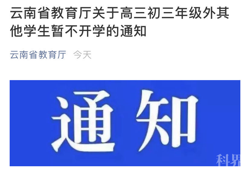 虽然又有多地明确开学时间,但云南省却按下了暂缓键。据云南省教育厅此前消息,在原定的开学时间中,3月30日,中小学其他年级开学。但在3月27日,云南省教育厅发布《关于高三初三年级外其他学生暂不开学的通知》。此前发布的通知↓