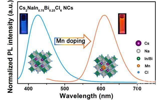 锰掺杂对钠基非铅双钙钛矿纳米晶发射光谱的影响
