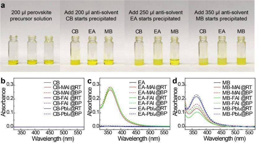 当样品加热至100℃时,可以明显捕获到晶粒方向的调整,从而使颗粒的堆积更加紧密。但是,当退火温度提高到220℃时,定向调整速度大大减慢。随后,通过应变诱导的晶界迁移使相邻的晶粒融合。在220℃,能找到δ-和α-CsPbI3之间的共生界面,这表明了相变的过程以及边界的消除。当退火温度上升到350℃,整个区域已经成长为一个晶粒尺寸大于3μm单个α-CsPbI3晶体。
