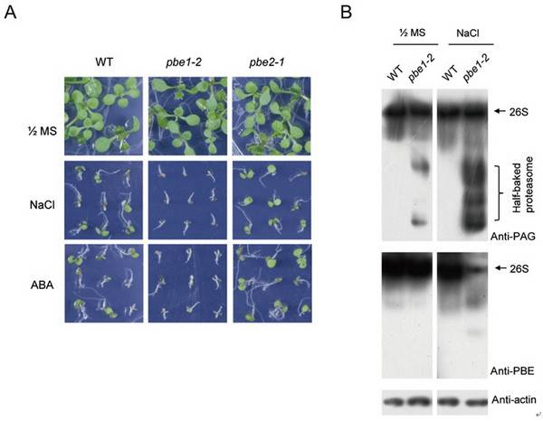 该团队之前的研究发现,拟南芥叶绿体外被膜转运因子Toc159缺陷型质体突变体ppi2中,质体前体蛋白在胞质中会大量积累【3,4】。由于前体蛋白在细胞质中会通过泛素-蛋白酶体系统 (UPS) 进行清除,因此在本研究中他们分析了蛋白酶体损伤对于质体蛋白前体稳定性和质体蛋白组装的影响。