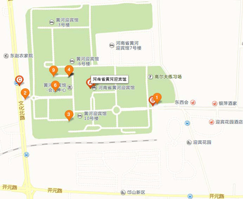 郑州市迎宾路西段黄河迎宾馆会议中心(下图6 号建筑,由南门进入)一楼报告厅。
