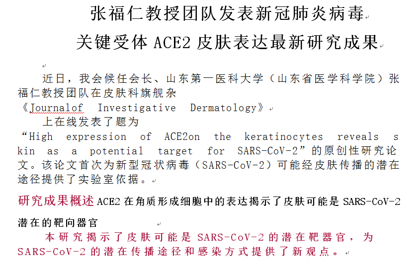 ACE2和TMPRSS2是参与SARS-CoV-2病毒侵入的两个分子。为了阐明编码ACE2和TMPRSS2基因的表达模式,研究人员考察了来自健康供体的各种人组织标本,分析了呼吸道、视网膜、骨骼肌、前列腺、大脑和皮肤等不同部位的组织的数据,证实了先前研究认为多个组织都会表达ACE2的可能性。他们还在之前没有分析过的组织中检测到了ACE2的表达和TMPRSS2的共表达。 作者发现,ACE2和TMPRSS2在能产生粘液的鼻部杯状细胞和纤毛细胞中存在高表达,说明这些细胞是最初病毒感染的位置,也可能是人体内和人群间传播的来源。 作者认为他们的研究结果有望为COVID-19的未来救治与预防带来启示。