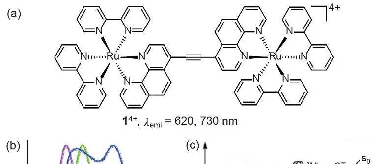 研究发现,成功的关键在于这类双核铂(III)配合物获得了新的桥联配体到金属-金属间的电荷转移(LMMCT)最低电子过渡态,如图2所示,不同于先前报道的传统铂(III)配合物(一般传统的三价铂配合物是以金属为中心的dσM-dσM*电荷转移为最低电子过渡态)。