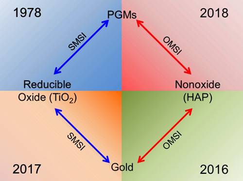 1978年,Tauster等发现可还原性载体负载的铂族金属在高温还原后会失去对小分子(CO、H2)的吸附能力,并命名为SMSI效应。SMSI对催化剂的活性、选择性和稳定性有显著的影响,从而引发了广泛关注和深入研究。前期研究中,乔波涛和张涛团队与王军虎团队发现了金和铂族金属纳米催化剂的多种SMSI效应(J. Am. Chem. Soc., 2016, 138, 56;Angew. Chem. Int. Ed., 2016, 55, 10606;Sci. Adv., 2017, 3, e1700231;Chem. Sci., 2018, 9, 6679)。单原子催化剂中,单原子作为活性中心,受金属载体相互作用影响理应比负载纳米催化剂更大,然而单原子催化剂上能否发生经典的SMSI效应迄今未知。