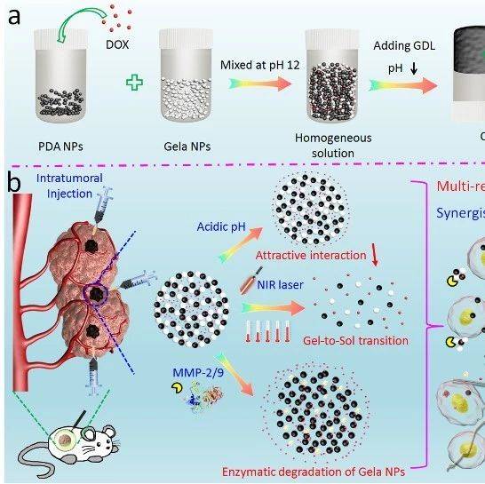 实验结果表明,在波长808纳米的近红外光诱导下,该新型材料在1分钟内即可实现96%的自修复。同时,该课题组对凝胶的生物安全性评估结果表明,该材料具有良好的可注射性能及生物相容性,可作为药物载体负载抗癌药物在近红外光下进行可控释放。