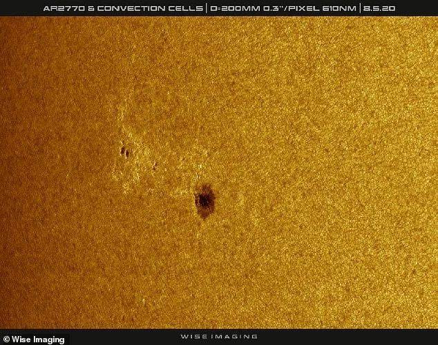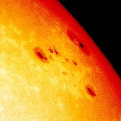 ▲太阳表面肉眼可见的大黑子群。