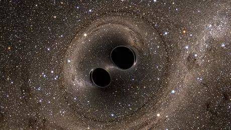 ▲表现两个黑洞绕转的画作。图片来源:NASA