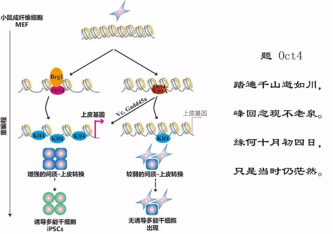 成纤维细胞在导入诱导因子后,会启动一套奇妙的未知程序,将体细胞返老还童到受精后约3.5天的状态。这种将体细胞诱导为多能干细胞是探索细胞命运转变机理的理想体系。过去10年来,全世界的科学家都在研究此奇妙过程,但在深层机制研究中并没有抽象出具有普遍性逻辑或者规律。