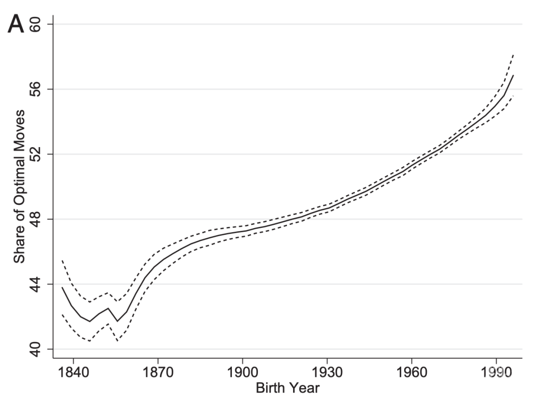 结果发现,在所有4项任务中,群体大小都是最能预测成年黑背钟鹊认知能力的指标:较大群体里的个体表现优于较小群体里的个体。群体大小与认知之间的关系在生命初期(出飞200天后)就会显现出来。研究人员还发现雌鹊在这些任务中的表现与3个繁殖成功率指标存在正相关。因此,认知能力更强的选择优势之一就是它能带来繁殖成功。