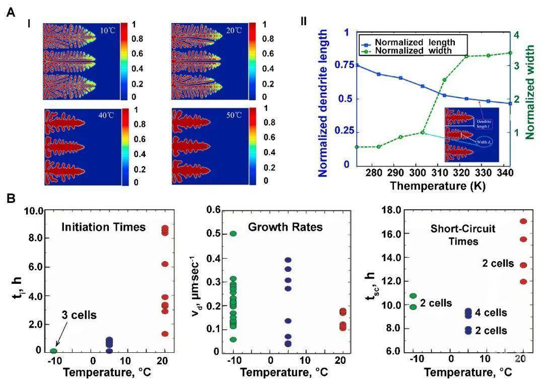 • 系统的分析了锂枝晶成核和生长以及SEI形成的温度效应,包括相关模型和实验分析;