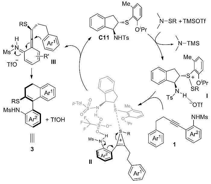 机械互锁分子(Mechanically Interlocked Molecules, MIMs)是由分子间或分子内的穿插和缠绕而形成的互锁结构。伴随MIMs的化学拓扑学(Chemical Topology)开辟了化学的新领域,使得化学家们第一次接触到了拓扑学。MIMs的拓扑结构不仅表现出卓越的美感,其在应用方面也拥有巨大的潜能。其中,手性在MIMs的拓扑结构中表现出来的拓扑手性(不能通过连续变形为其镜像)尤为重要。尽管MIMs的拓扑手性早已为人所知,但它们的立体选择性合成却鲜见报道。对于两个非定向分子环,它们相互穿插互锁一次形成的分子Hopf Links([2]索烃)不具有拓扑手性,而它们双重互锁形成的分子Solomon Links就具有了拓扑手性(有一对拓扑对映体P和M)。目前为止,虽然许多外消旋的分子Solomon Links已被合成出来,但具有直接结构证据的单一拓扑手性Solomon Links的立体选择性合成却尚未被实现。