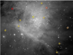天狼星为大犬座α星,是除太阳外全天最亮的恒星,目视星等达-1.45等,稍暗于金星与木星。天狼星是个双星系统,我们所说所看到的天狼星一般指天狼星A,它与天狼星B构成双星系统。天狼星A是一颗比太阳亮25.4倍的早期A型蓝矮星,体积略大于太阳,半径是太阳的1.711倍,表面温度是太阳表面温度的2倍,高于织女星,呈蓝白色。天狼星B半径为5900公里左右,有着较高的表面重力。因此,天狼星B的外层大气层几乎为纯氢,光谱中也找不到任何其他元素。