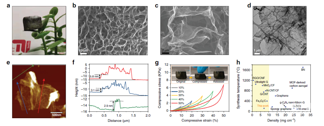 超轻、绝缘的陶瓷气凝胶可控制最高温度不造成伤害 :研究人员已经研发出了一种主要由空气组成的近乎无重量的材料,它能抵挡并防护在航空航天和工业环境中所经受的某些最极端的温度。据该报告披露,一种用具有不同寻常的双负折射率属性的新型陶瓷气凝胶展示了卓越的结构稳定性和超级绝缘性,使其成为一种可在条件苛刻环境(如太空舱上的防热罩)中使用的理想材料。气凝胶是一种主要由包含在某固态媒介网络(如陶瓷、金属或碳)内的空气组成的复合材料。陶瓷气凝胶有着难以置信的轻量,并拥有可在苛刻环境中发挥作用材料所需的高度理想的特性。然而,大多数常规性的陶瓷气凝胶是脆性的,它们容易在长时间接触高温或温度出现大幅和快速摆动时退化。据作者披露,这些问题极大地限制了陶瓷气凝胶作为一种超级绝缘材料的使用。Xiang Xu和同事报告了用薄如原子的六边形氮化硼(h-BN)片材所设计的一种独特的陶瓷气凝胶。通过仔细地设计陶瓷气凝胶的微观结构,Xu等人同时实现了负泊松比(这是某材料在被压缩时向外膨胀倾向的检测指标)及负热膨胀系数。为了评估这些材料的力学和热学性能,作者进行了一系列的测试,其中包括将该气凝胶反复加热至900 ℃并接着将其快速冷却至-198 ℃,其变化速率达每秒275 ℃。Xu等研究人员还通过在真空中将其与接近1500 ℃的温度接触来评估长期温度应激的作用。据结果披露,在经过严格的试验之后,该气凝胶基本保持不变,其强度丧失近乎为零。Manish Chhowalla 和 Deep Jariwala在相关的《视角》中讨论了该气凝胶的潜力。