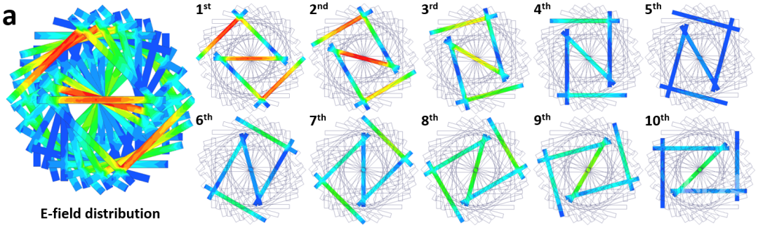 在对圆极化电磁波的调控技术中,基于几何相位的超表面器件已被广泛研究,并在诸多领域取得应用。然而,由于几何相位和传输相位物理机制的限制,出射圆极化波无法得到全部利用,导致了出射能量的浪费和损失。哈尔滨工业大学张狂副教授团队与法国的Shah Nawaz Burokur教授团队和Patrice Genevet教授团队合作,提出了一种独立控制圆极化全部通道的相位调控方案。通过引入手性诱导相位,结合传输相位与几何相位,可在全部的四个圆极化通道中调节得到独立波前分布,从而实现出射能量的全场利用。相关研究成果以“Independent phase modulation for quadruplex polarization channels enabled by chirality-assisted geometric-phase metasurfaces”为题,发表在《Nature Communications》上,博士生袁乐眙为文章第一作者,张狂副教授、丁旭旻副教授、Shah Nawaz Burokur教授和Patrice Genevet教授为共同通信作者。