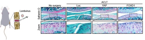 骨关节炎是与机体衰老密切相关的退行性骨关节病,严重影响老年群体的生活质量。中国40岁以上群体骨关节炎患病率近50%。对于骨关节炎患者,目前尚无安全有效的治疗方法。间充质干细胞的衰老和耗竭被认为是骨关节炎的主要诱因之一【1】。因此,揭示干细胞衰老的分子机制将为有效干预骨关节炎提供线索和靶标。