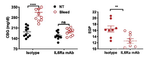 IL-6是肝细胞中STAT3信号通路的基础【3】。为验证IL-6对肝细胞内STAT3信号通路的影响,作者原位接种PDAC细胞至Il6−/−小鼠内,发现荷瘤Il6−/−小鼠肝细胞内STAT3活化降低,伴随着骨髓细胞聚集、细胞外基质蓄积的减少和SAA的表达的降低,但不影响原发肿瘤的生长、增殖和血管密度。且Il6−/−小鼠对肿瘤转移性肝脏定植的易感性也显著低于对照组。此外,通过IL-6R抗体阻断IL-6信号通路,也可显著抑制肝脏内形成肿瘤转移前微环境。值得注意的是,作者发现IL-6主要来源于原发肿瘤内的基质细胞而非肿瘤细胞本身。以上结果表明,来自于原发肿瘤内非肿瘤细胞产生的IL-6是肝细胞STAT3信号通路的重要调控者。
