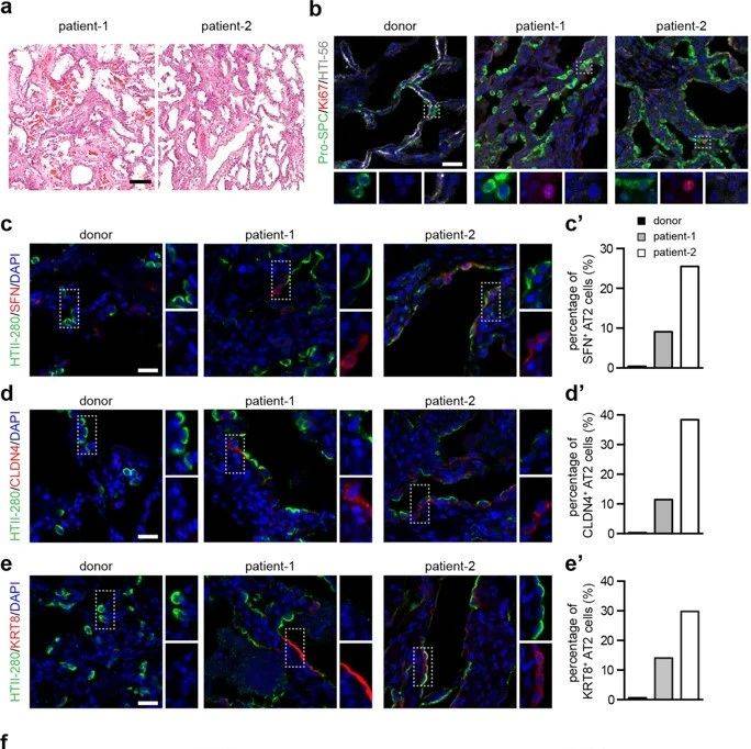 肺泡上皮由肺泡I型上皮细胞(Lung alveolar type I cells, AT1)和肺泡II型上皮细胞(AT2)组成。 AT1具有扁平的形状,覆盖肺泡表面积的约95%,它们对于肺部的气体交换功能至关重要。AT2是立方形的,它们占据肺泡表面积的5%。 AT2具有多种功能,例如产生表面活性物质,调节肺部免疫功能等。此外,AT2也作为干细胞来修复受损的上皮细胞。该功能基于它们能够自我复制扩增并且还可以分化成为AT1。肺泡上皮的修复对于急性肺损伤,急性呼吸窘迫综合征(ARDS)等患者非常重要【1】。然而上皮修复所需的信号传导机制仍然不明确。