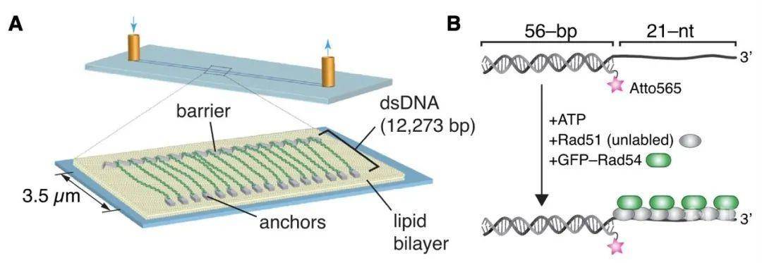 基因的同源重组是由重组酶介导的、发生在相同或相近的两条DNA链之间的链交换,对于维持遗传稳定性和生物多样性具有重要意义。同源重组现象的发现已有几十年历史,同源识别和链交换是同源重组过程中最重要的步骤,但由于其反应中间产物停留时间短并且状态复杂,常规方法难以捕捉,因而其分子机理仍十分模糊。