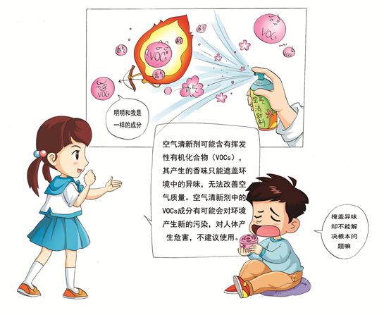 空气清新剂可能含有挥发性有机化合物(VOCs),其产生的香味只能遮盖环境中的异味,无法改善空气质量。空气清新剂中的VOCs成分有可能会对环境产生新的污染,对人体产生危害,不建议使用。