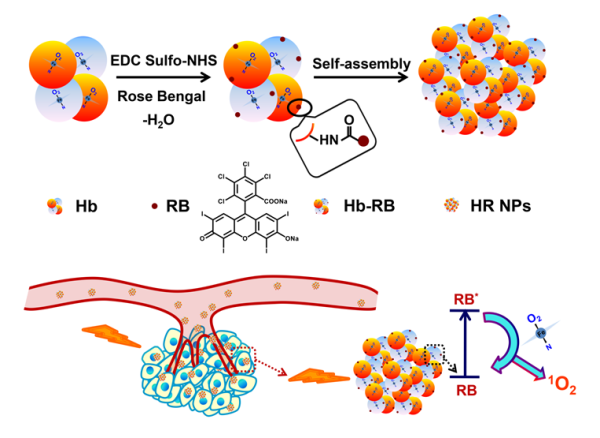 近年来,分级光动力疗法(fPDT)被开发出来用于来进一步提高治疗的安全性和有效性,分级光动力疗法类似于临床分级放射疗法,在肿瘤区域中进行明暗间隔的多次照明以达到更好的治疗效果。不幸的是,由于肿瘤血管的缺乏和组织结构的异常,大多数肿瘤是乏氧的,而PDT可以进一步降低肿瘤部位的氧气浓度。在fPDT中,在进行第一次PDT后,肿瘤脉管系统可能会受到严重损伤或破坏,从而在随后的组分中很难使肿瘤部位再氧化,这极大地限制了fPDT的抗肿瘤效率。