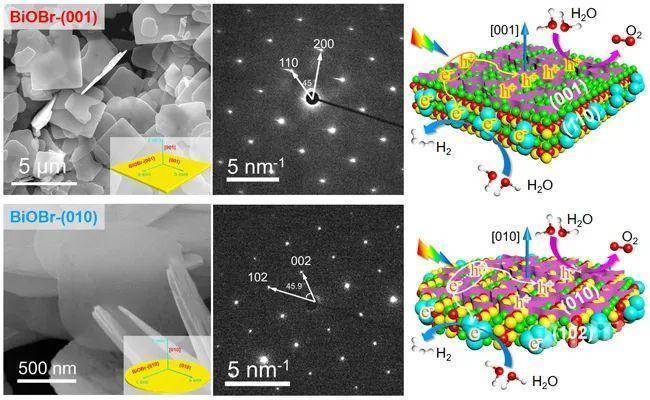 光催化反应发生在半导体表面,因而半导体表面表面原子结构对催化剂催化性能有很大影响。催化剂不同晶面具有不同的原子排列和结构,会表现出不同的催化性能,可以通过调控催化剂晶面来提高其催化性能。如Dan Wu等发现{001}晶面占主体的BiOBr比{010}晶面占主体的BiOBr在使细菌失活方面表现出更好的光催化性能。