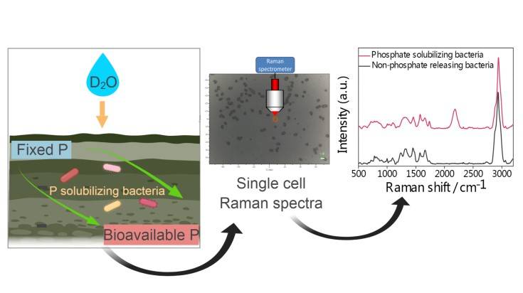 中国科学院城市环境研究所朱永官研究团队发展了利用单细胞拉曼结合重水标记筛选高活性土壤解磷微生物的新方法。