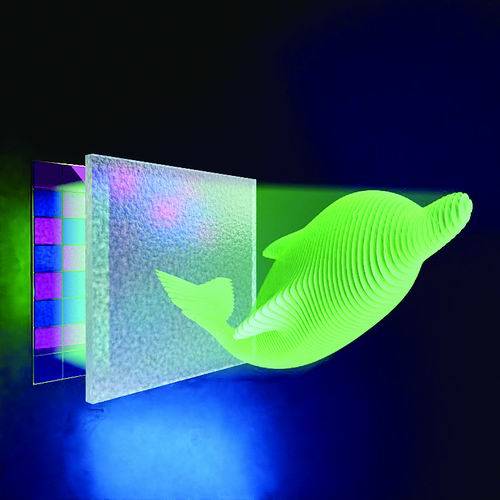 这样的二维图像看起来是随机的,和物体本身完全不同。正如光波以一种最初反射自物体的产生波阵面的方式散射或衍射那样,但该物体的三维幻影可通过发出另一束光如参照光到底片上被恢复。