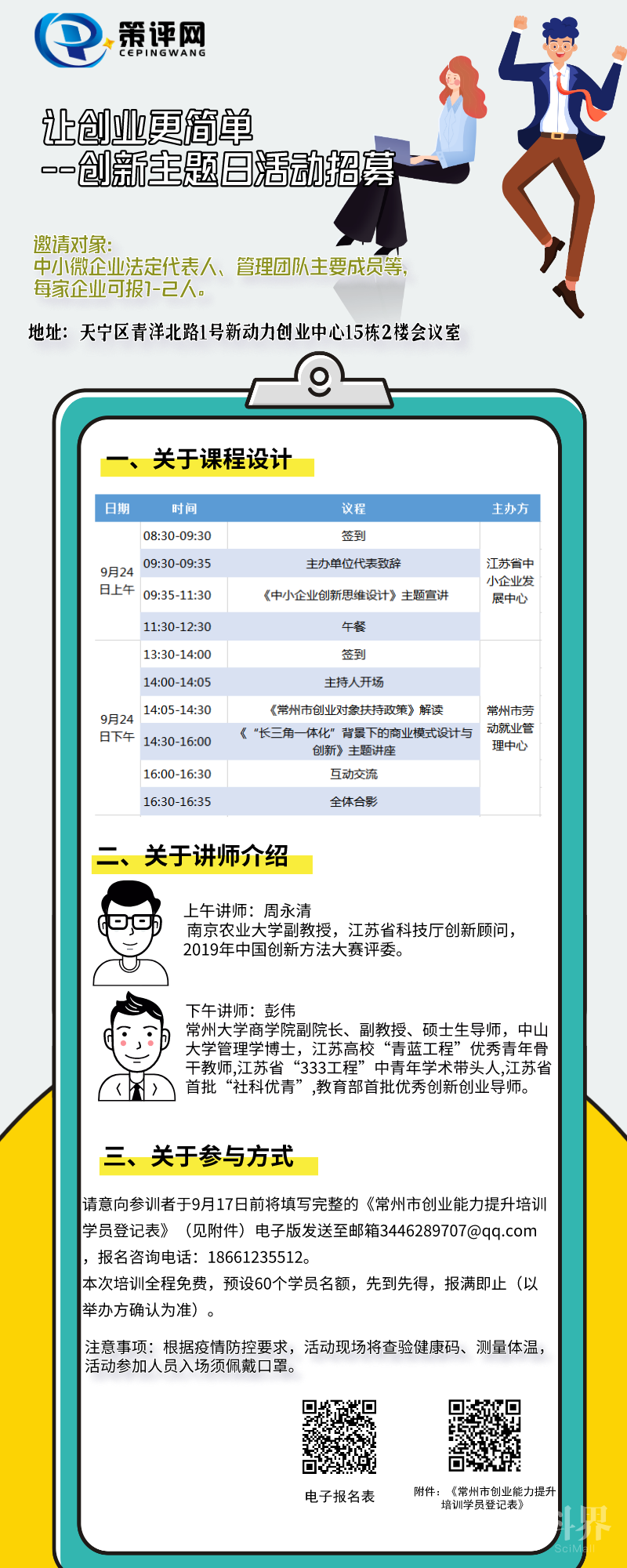 为推动创业创新氛围,激发市场活力和社会创造力,帮助初创企业经营管理者进行进一步了解前沿趋势、培育创新精神、挖掘创新机会、促进其健康发展,特组织实施本期培训,全市中小微企业管理者均可报名。