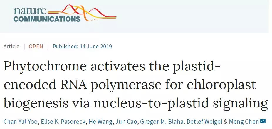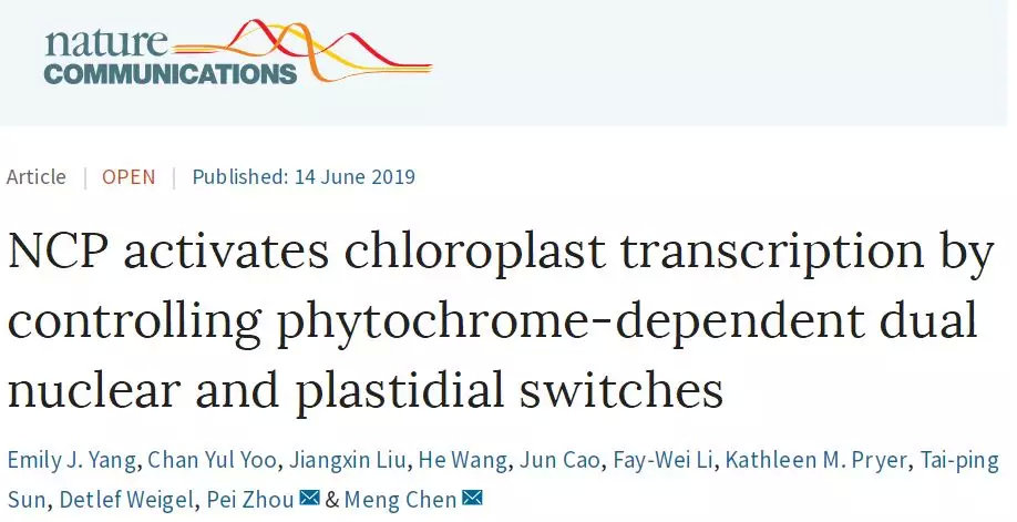 这就很有意思了,核定位的光敏色素在接收光信号后,如何给质体“下命令”,告诉质体要开始转录光合相关基因了?美国加州大学河滨分校陈濛教授实验室的最新研究发现,两个核-质体双定位的蛋白RCB和NCP参与了光敏色素介导的信号通路,相关成果以Phytochrome activates the plastid-encoded RNA polymerase for chloroplast biogenesis via nucleus-to-plastid signaling和NCP activates chloroplast transcription by controlling phytochrome-dependent dual nuclear and plastidial switches为题于近日背靠背发表在Nature Communications期刊上。