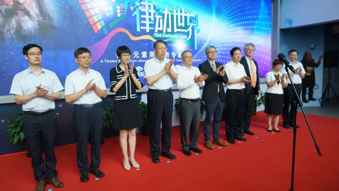 7月10日上午,“律动世界——化学元素周期表专题展”开幕式在中国科技馆短期展厅门口举行。中国科协书记处书记、副主席孟庆海,中国科协党组成员、中国科技馆馆长殷皓,中国科协科普部副部长廖红,中国化学会副理事长、中国科学院大连化学物理研究所研究员、中国科学院院士杨学明,中国化学会秘书长、中国科学院化学研究所研究员范青华,巴斯夫全球副总裁、中国首席代表伍德克等出席启动仪式。启动仪式由中国科技馆副馆长欧建成主持。