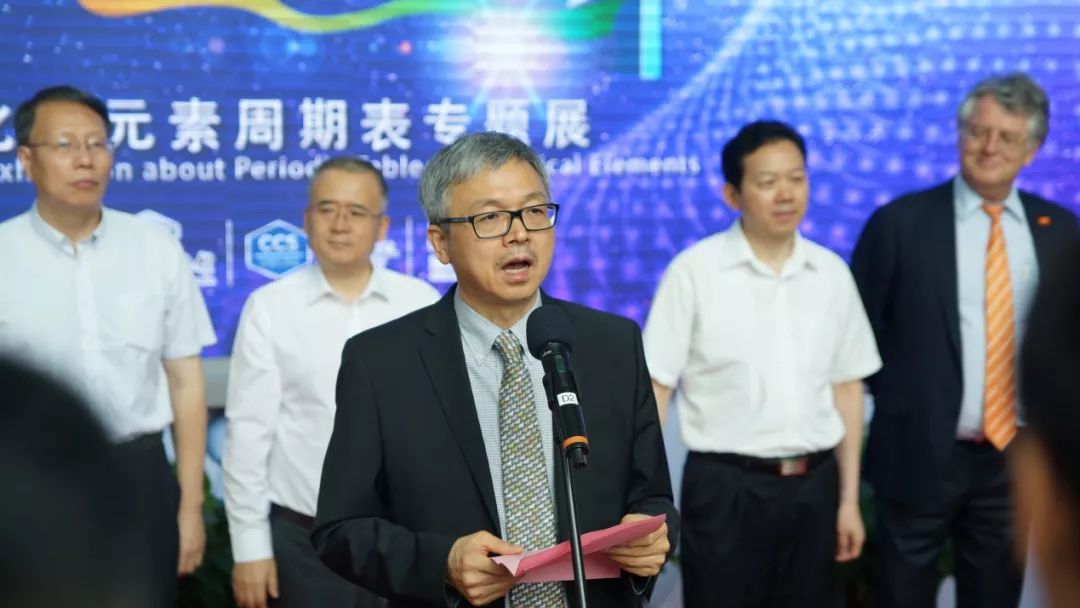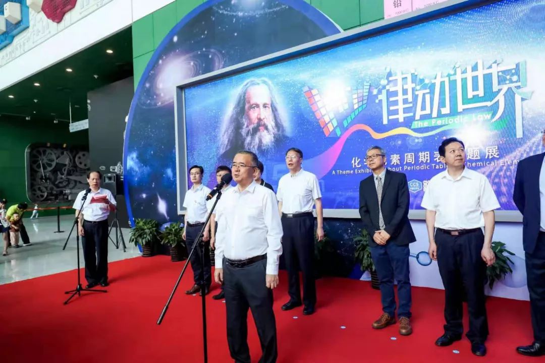 杨学明副理事长代表中国化学会致辞,他介绍,为庆祝元素周期表诞生150周年,2019年被联合国命名为“国际化学元素周期表年(IYPT 2019)”。作为倡议联合国设立国际化学元素周期表年的学会之一,中国化学会积极联合相关单位,举办系列活动,向民众普及化学和“化学元素周期表”的知识和意义。包括与中国科技馆联合策划组织的 “律动世界”国际化学元素周期表主题年系列活动、科技周期间在北京三里屯举办“碳氮氧氟氖,点亮三里屯”公益科学传播活动、组织“以元素为主题的优秀科普图书”推荐活动等。他指出,本次展览特别推出了一个展项,展示来自中国科学院、清华大学、北京大学等科研单位的我国118位青年化学家的风采,他们不仅在化学相关领域取得了卓越的成绩,而且以118个化学元素的“代言人”身份,积极参与到化学元素周期表的科普工作中,为科研和科普事业做出积极贡献。