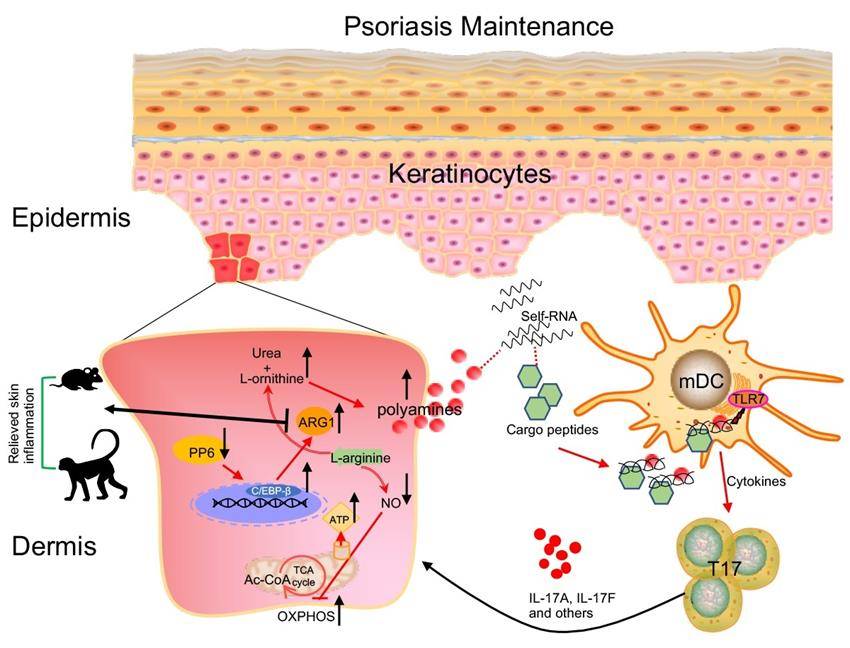 银屑病是一种免疫介导的慢性复发性皮肤炎症,顽固难治且严重影响患者的生活质量及身心健康,是当今皮肤科领域待解决的重要难题之一。随着现代生活压力的增大,该疾病在我国的发病率逐年上升。虽然已有药物用于银屑病的治疗,但仍不能满足临床需求,迫切需要发现新靶点和研发新药。