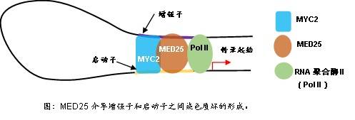 作为一种重要的植物激素,茉莉酸不仅调控植物对于机械损伤、昆虫取食和腐生型病原菌侵害的防御反应,还参与调控诸多生长发育过程。basic Helix-Loop-Helix(bHLH)类型转录因子MYC2是茉莉酸信号通路的核心转录因子,其所指导的转录调控过程是整个茉莉酸信号通路的核心事件。目前人们对MYC2转录抑制和去抑制的机制较了解,但对信号启动后MYC2快速激活下游基因表达的机制还知之甚少。