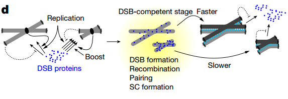中国科学院遗传与发育生物学研究所程祝宽研究组详细观察了单、双子叶植物减数分裂纺锤体组装的细胞学过程,证实最终的两极纺锤体是由多极纺锤体转变而来的。系统研究减数分裂突变体纺锤体的组装,研究人员发现在DSB形成因子OsMTOPVIB功能丧失情况下,多极纺锤体不能转变为两极纺锤体。而在其他一系列不产生DSB的突变体中,两极纺锤体均可正常形成。这说明在减数分裂过程中,纺锤体的正确组装并不依赖于DSB形成。而在同源重组不能发生导致仅有单价体存在的性母细胞中,部分单价体的着丝粒会改变其原来的单极取向,成为类似有丝分裂的双极取向,这是两极纺锤体形成的重要保证。研究表明,OsMTOPVIB通过改变姊妹染色单体着丝粒的黏连参与减数分裂纺锤体的组装。相关结果为由染色体介导植物减数分裂纺锤体的组装理论提供了直接证据。