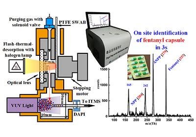 研究人员在新型离子阱质谱仪设计了一种新型光闪热解析系统,在3秒内即可将解析池内焦点附近的毒品加热至290℃,从而实现了难挥发性毒品的快速汽化。相较于过去,该仪器对难挥发毒品那可汀的检测灵敏度提高了60倍以上。