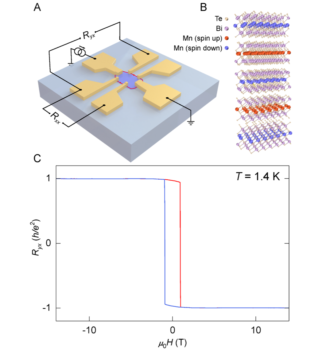 图三,在Cr掺杂的(Bi,Sb)2Te3拓扑绝缘体磁性薄膜中测量到的霍尔电阻