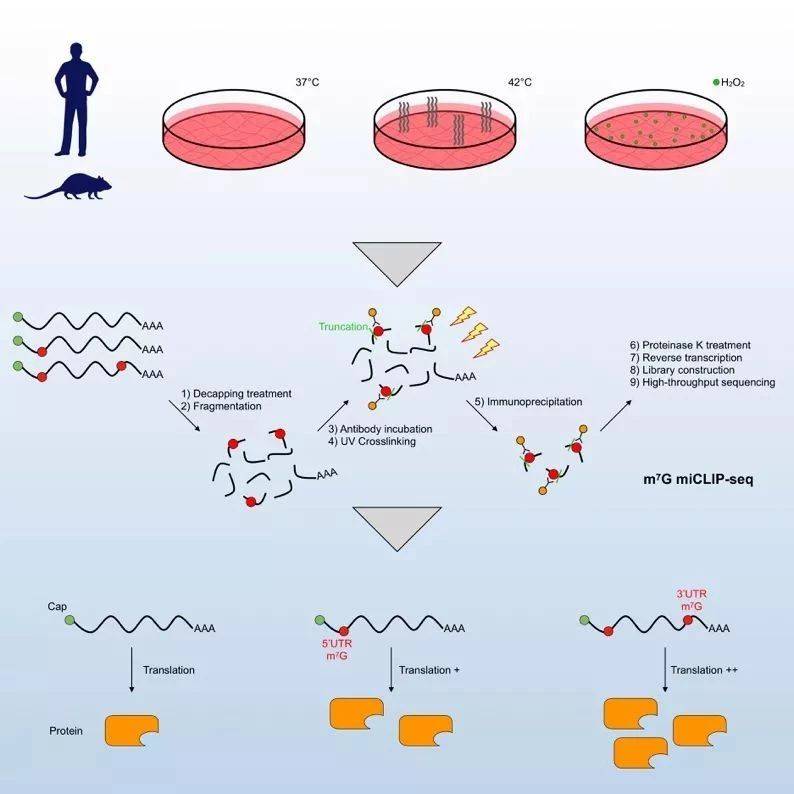 R-loop是一种由RNA:DNA杂合链和单链DNA组成的特殊核酸结构,在原核和真核生物的基因组中分布广泛且普遍存在。R-loop在很多关键的生物学过程中发挥重要功能,包括染色质修饰、转录调控、DNA损伤修复以及基因组稳定性等,但其如何被精确调控的机制尚不清楚。m6A修饰作为信使RNA上丰度最高的修饰类型,广泛参与哺乳动物的发育、免疫、干细胞更新、脂肪分化以及肿瘤生成和转移等生命过程。然而,目前尚不清楚m6A是否能作为R-loop中RNA组分的本源特征来调控R-loop水平,进而发挥各种生物学功能。