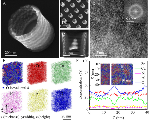 非晶合金塑性变形形成剪切带的过程被看作是一系列剪切转变区(STZ)的激活和协同重排,剪切带内部结构相对周围母体发生巨大变化,剪切带的形成和扩展也往往伴随着粘滑运动、绝热升温、纳米晶化等新奇物理现象。然而研究者对剪切带的具体厚度这一基本问题还没有达成共识。早期,透射电子显微镜揭示剪切带的直观厚度是几十纳米的原子结构重排区域。近年来,纳米压痕、放射性示踪、纳米束X射线衍射、X射线光子关联谱等一系列实验方法发现,围绕着剪切带存在着更广泛分布的影响区。中心剪切带形成的同时,其周围一定范围母体也参与到变形和结构重排,这迫使人们需要重新认识非晶合金的应变局域和塑性变形机理。但是,由于分辨率和灵敏度等差异,不同实验方法得出的剪切带影响区宽度差别较大,尺度跨域纳米到亚微米,亟需新的实验手段来全面且精准地揭示剪切带影响区。