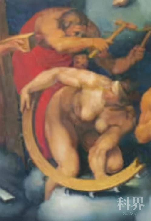 西斯廷壁画案的内幕我们至今无从得知,唯一可以明确看到的是裁决执行者的作为。执行修改壁画这个命令的是米开朗基罗的朋友、之前由于大师推荐才得以供职教廷的艺术家达妮埃莱·达·沃尔泰拉(Daniele da Volterra)。作为艺术史上第一个知名的审查裁决执行者,达·沃尔泰拉所面临的最艰辛一项工作,就是改造画中圣加大肋纳和圣伯拉削的身体位置。