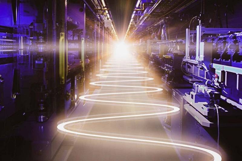 在汉堡的XFEL中,一束电子在一个长达1.7公里的隧道中首先被加速。随后,磁铁将电子的路径弯曲成摆动的轨道,导致它们在曲线上发出一束高能量X射线。明亮的X射线脉冲是如此强烈,以至于它们能够破坏所撞击的样本,然而在此之前,足够多的被散射的光子已经能够揭示样品的原子结构。