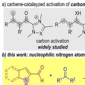 在自然界中,金属酶作为复合材料可通过其蛋白质的骨架来实现对反应底物的选择性,而这种复合材料的协同性在纳米颗粒的催化中很难实现。在纳米颗粒的催化过程,高聚物往往表现出活性位点覆盖以及限制传质/电子传输等抑制行为,从而对催化性能起到负面影响。近日,美国康涅狄格大学的何杰教授和南京师范大学刘犇教授等设计并使用聚合物咪唑碳酸氢根盐作为卡宾前驱体来稳定金属纳米催化剂(Au和Pd),得到两种聚合物卡宾(单齿和多齿卡宾)修饰的金属纳米颗粒。在CO2还原过程中,聚合物卡宾可调节CO2和水的传质,从而达到抑制水的直接还原以及提高CO2还原的目的。同时利用卡宾与金属颗粒之间的强配位,有效解决了CO2还原中金属颗粒的稳定性和产物选择性等问题。