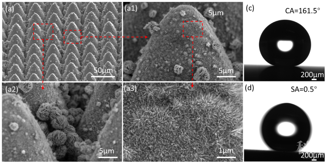 超疏水材料是一种对水具有排斥性的材料,水滴在其表面无法滑动铺展而保持球型滚动状。科学家将静态水接触角大于150°,滚动角小于10º的表面称为超疏水表面。超疏水表面因其具备自清洁、油水分离、抗腐蚀、防结冰以及防雾等优秀特性,吸引了大批科学家投入到超疏水材料的研究中去。