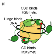 常规核小体的结构包括一个由四种组蛋白H2A、H2B、H3、H4组装而成的蛋白核心,一条在组蛋白核心上缠绕1.6圈,长度为147 bp的双链DNA。核小体结构非常稳定,对DNA组成和组蛋白修饰的改变均不敏感。组蛋白变体可以改变核小体和染色质结构调控基因转录,迄今为止测定的所有单核小体结构中,构象改变最大的CENP-A核小体就是组蛋白H3变体核小体,结构显示CENP-A核小体包含的DNA为121bp,但其蛋白核心结构变化不大。组蛋白H2A变体H2A.B和H2A.Z.2.2分别在精原细胞和人脑组织中特异表达,在精子发生、转录起始、RNA剪切等过程中具有重要功能。H2A.B和H2A.Z.2.2形成开放的核小体结构,并"破坏"染色质结构,导致染色质松散。但是这种开放的核小体极不稳定,难以获得高精度结构。