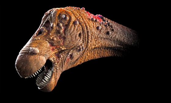 经过分析,他们发现这只泰坦巨龙生前患有骨髓炎,造成了骨头变形。他们检查骨头后发现,骨头的血管通道中还有微小的生物化石,进一步探究后确认是一种血液寄生虫的化石。