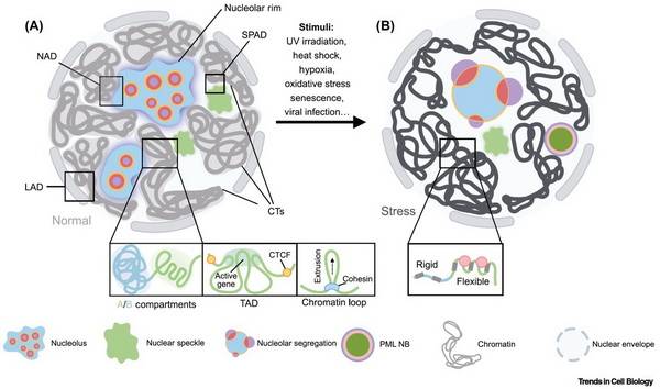 常规核小体的结构包括一个由四种组蛋白H2A、H2B、H3、H4组装而成的蛋白核心,一条在组蛋白核心上缠绕1.6圈、长度为147 bp的双链DNA。核小体具有稳定的结构,对DNA组成和组蛋白修饰的改变均不敏感。组蛋白变体可改变核小体和染色质结构调控基因转录,在迄今测定的所有单核小体结构中,组蛋白H3变体核小体是构象改变最大的CENP-A核小体,结构显示,CENP-A核小体包含的DNA为121 bp,但是其蛋白核心结构变化不大。组蛋白H2A变体H2A.B和H2A.Z.2.2分别在精原细胞和人脑组织中特异表达,在精子发生、转录起始、RNA剪切等过程中发挥重要功能。H2A.B和H2A.Z.2.2形成开放的核小体结构,并“破坏”染色质结构,导致染色质松散。但是这种开放的核小体极不稳定,难以获得高精度结构。