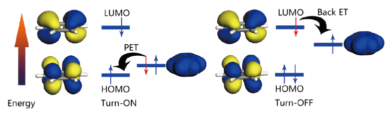 近年来,四嗪生物正交化学已经被广泛地应用于前药精准释放、蛋白功能调控、免疫分子影像、活细胞荧光成像等多个生物医药的研究领域,其作为诊疗工具的临床转化也在积极进行。在这些生物医学应用中,常常将四嗪分子与常用的荧光团偶联,利用四嗪的自身物理化学性质对荧光进行淬灭而通过生物正交反应实现荧光的开启,从而进行高信噪比和分辨率的活细胞活体荧光成像。而由于四嗪大多只对发射波长为580 nm以下的荧光分子具有较好的淬灭效果,而处于远红、近红外的荧光分子难以被淬灭。近十年来,科学家们对四嗪荧光探针设计有许多尝试,但鲜有超过100倍荧光增强的近红外探针报道。开发这类荧光探针可增强荧光的组织穿透距离,避免体内自发荧光干扰,为哺乳动物的活体高分辨荧光成像和光学手术导航打下基础。